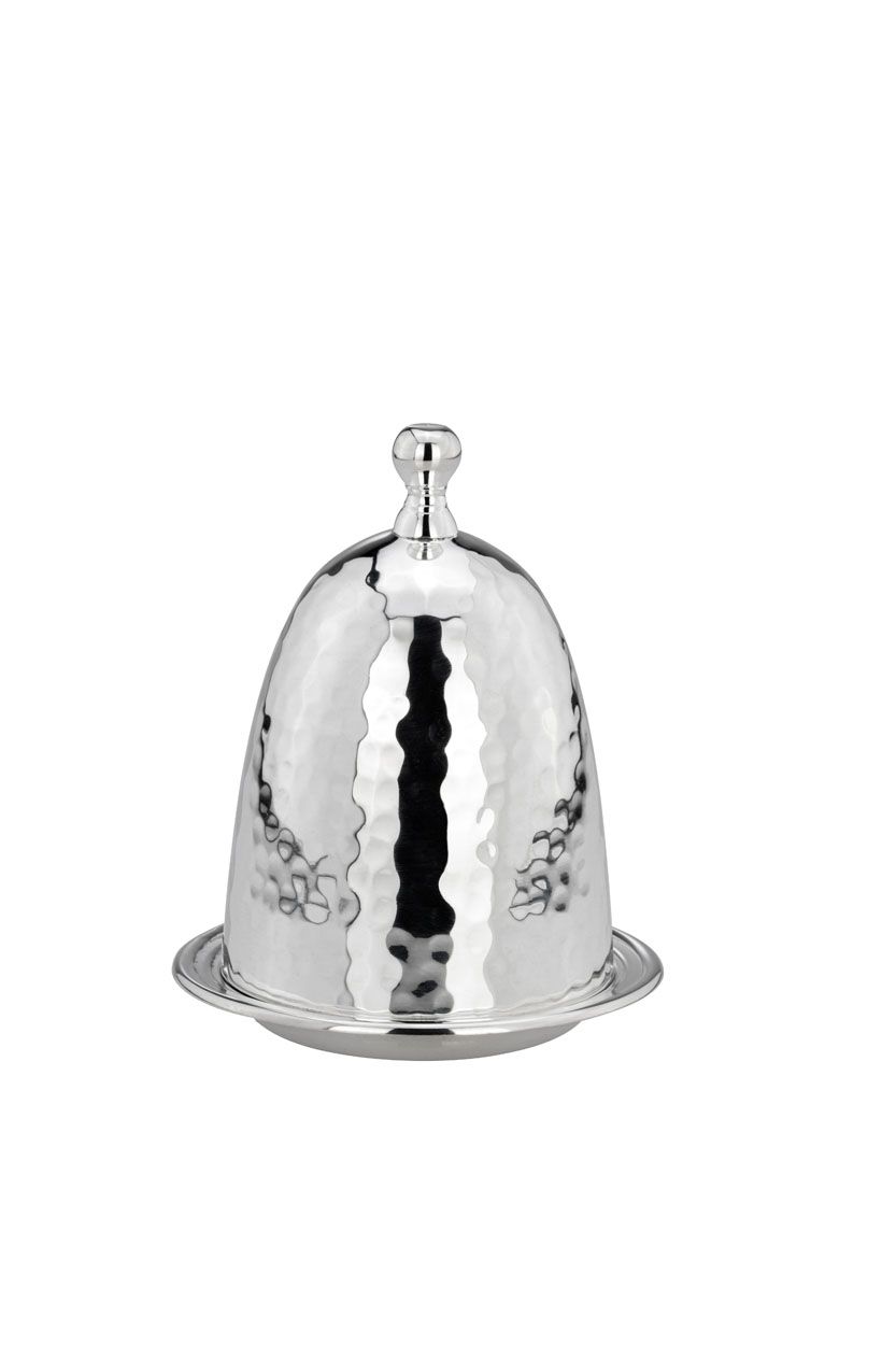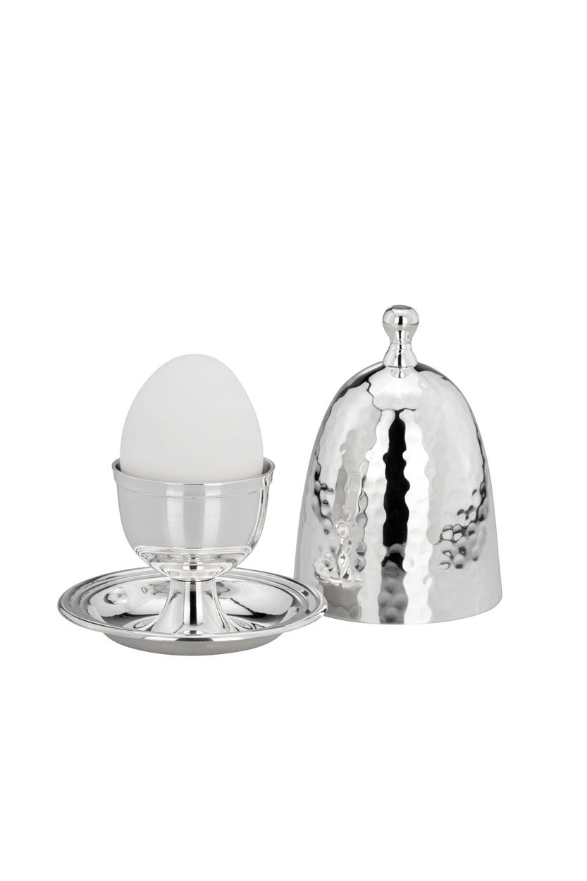 Eierbecher mit abnehmbarem gehämmerten Deckel in versilberter Ausführung, Höhe 10,5 cm.   mehr
