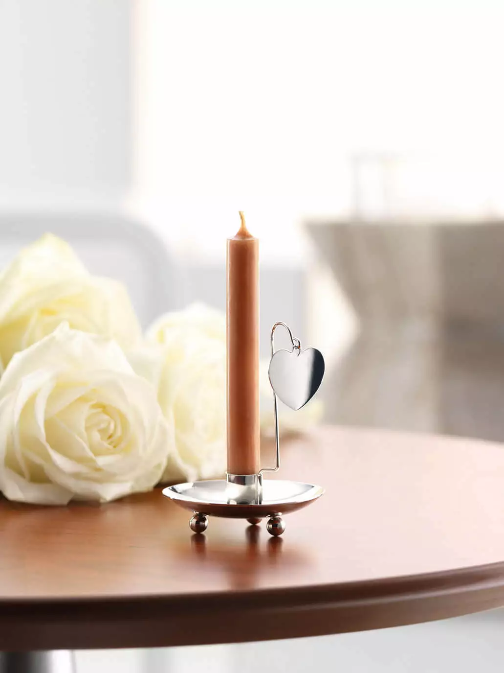 1-lichtiger Kerzenständer Herz auf 3 Kugelfüßen in Sterling-Silber aus der Silbermanufaktur Robbe & Berking.